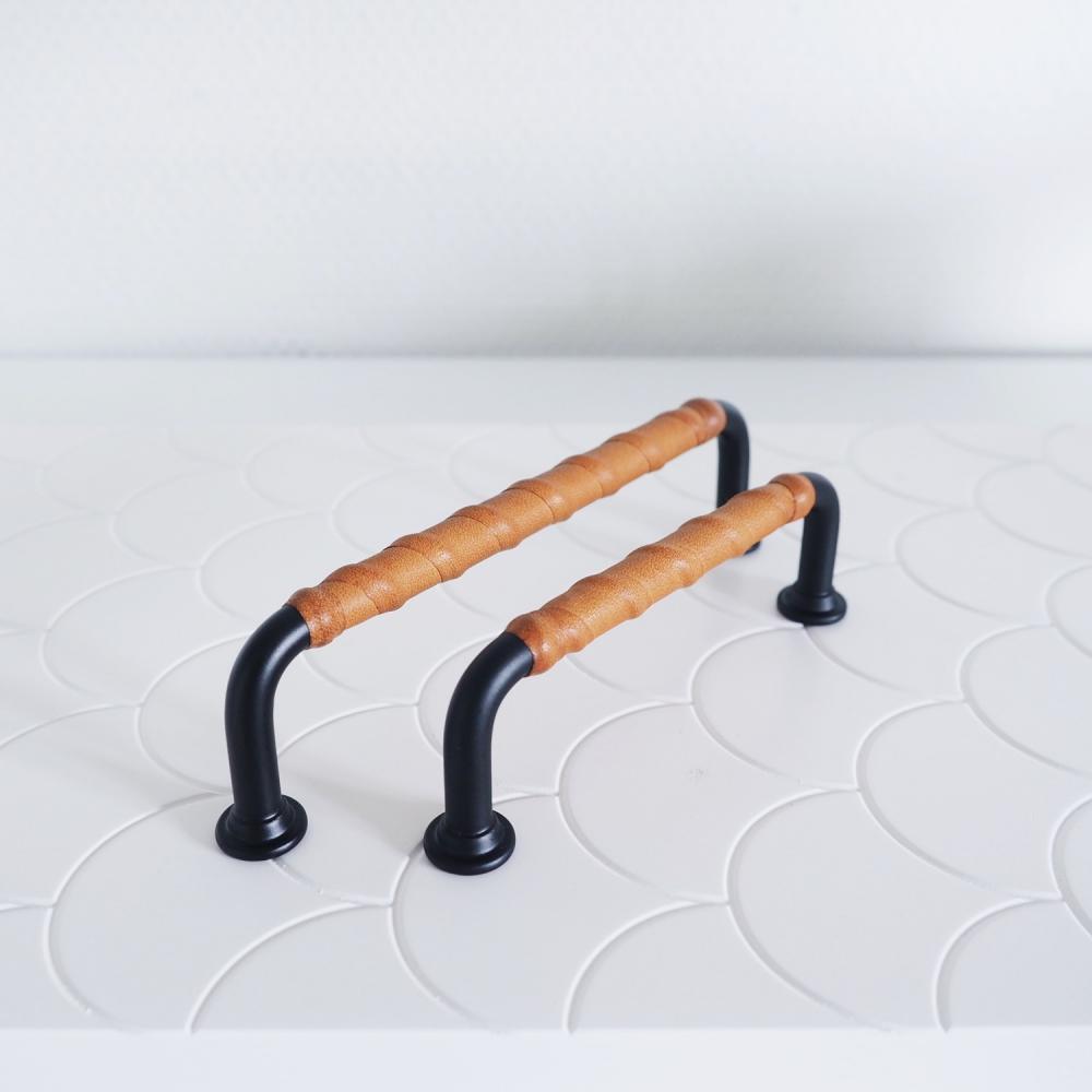 Visste du att alla våra läderhandtag lindas för hand? De lindas för hand av en person i Sverige och vårt samarbete är så bra att i princip alla handtag hos It's Design kan lindas med läder. Vill du därför ha något helt unikt, har en egen idé om hur beslaget ska se ut eller några andra önskemål så gör vi gärna specialbeställningar. Vill du ha 5st unika läderhandtag med svarta handtag och cognacsläder? Inga problem! Inga beställningar är för små och vi gör gärna jättelånga läderhandtag och läderhandtag med äldre cc-mått.
