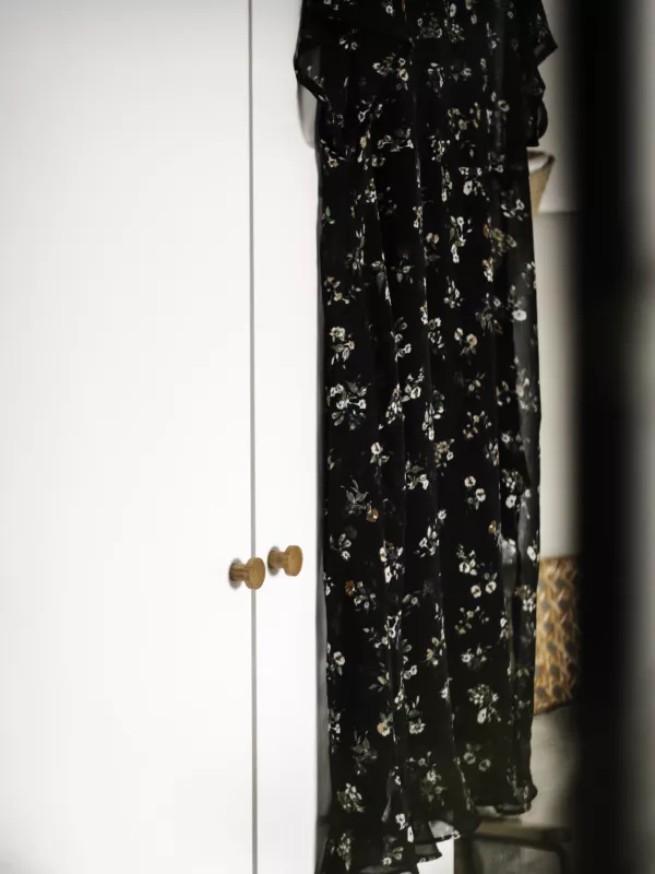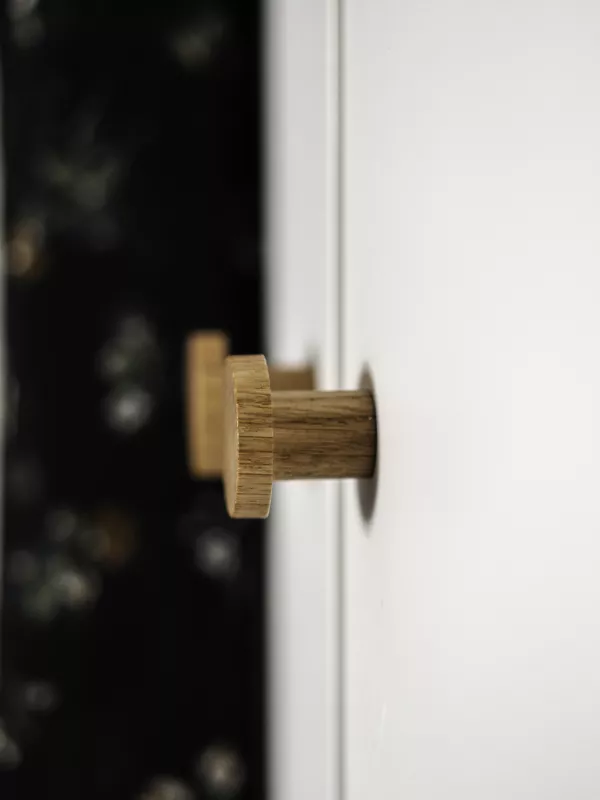 För dig som vill skapa en varmare känsla på en enkel vit garderob rekommenderar jag gärna vår träknopp Yumi i ek. Den är tillverkad i massiv ek, har en mjuk och tidlös form och passar in i många olika stilar, allt från skandinaviskt avskalat till mer ombonade rum. Kombinationen av det naturliga träet och den enkla designen ger garderoben ett helt nytt uttryck.
