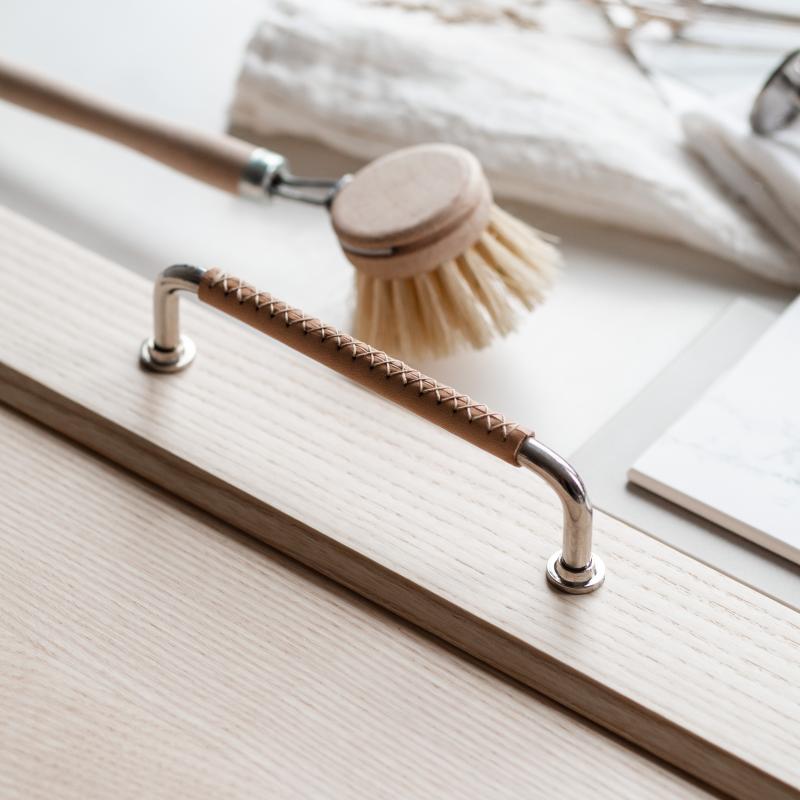 Our leather handles feature Swedish-made metal bases wrapped in eco-certified cowhide from Tärnsjö Garveri. Each handle is carefully handcrafted, giving your kitchen a unique and artisanal touch.