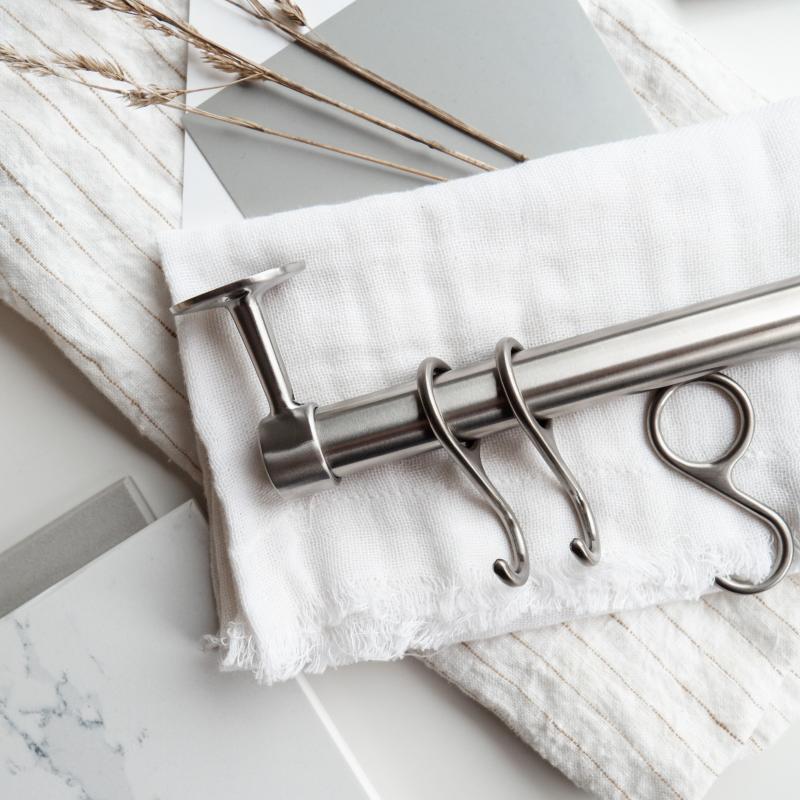 Stainless steel is another low-maintenance and timeless option that pairs beautifully with wood. It’s tough, easy to clean, and looks fantastic as a countertop or as smaller details like utensil rails, handles, or knobs. A great material for a sleek and modern finish!