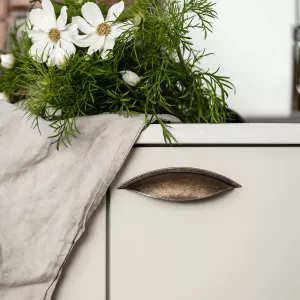This model of cup handle gives a more modern impression unlike the original ones. The handle is rustic and dresses excellently as a kitchen handle.