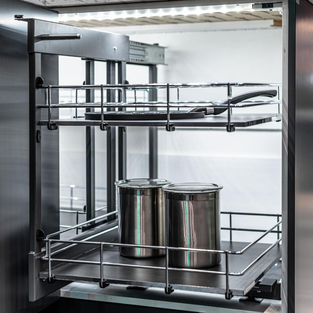 Our most spacious corner cabinet extract is Magic Corner! A smart extract that follows the shape of the cabinet and you get maximum use for the otherwise difficult corner cabinet in the kitchen!