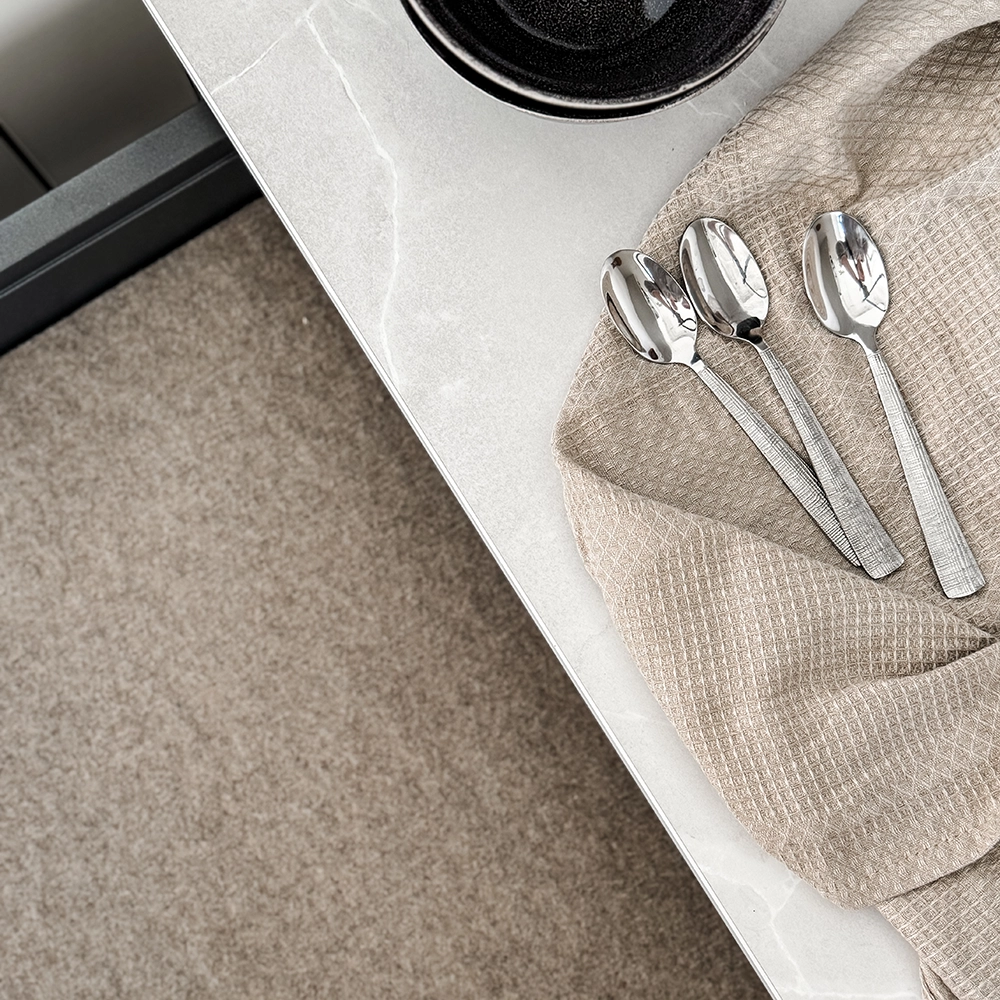 Drawer mat in grey-beige felt to place in the bottom of your kitchen drawers. The carpet protects the bottom of the drawer from wear, dampens noise and helps the kitchen items to lie still in the drawer..
