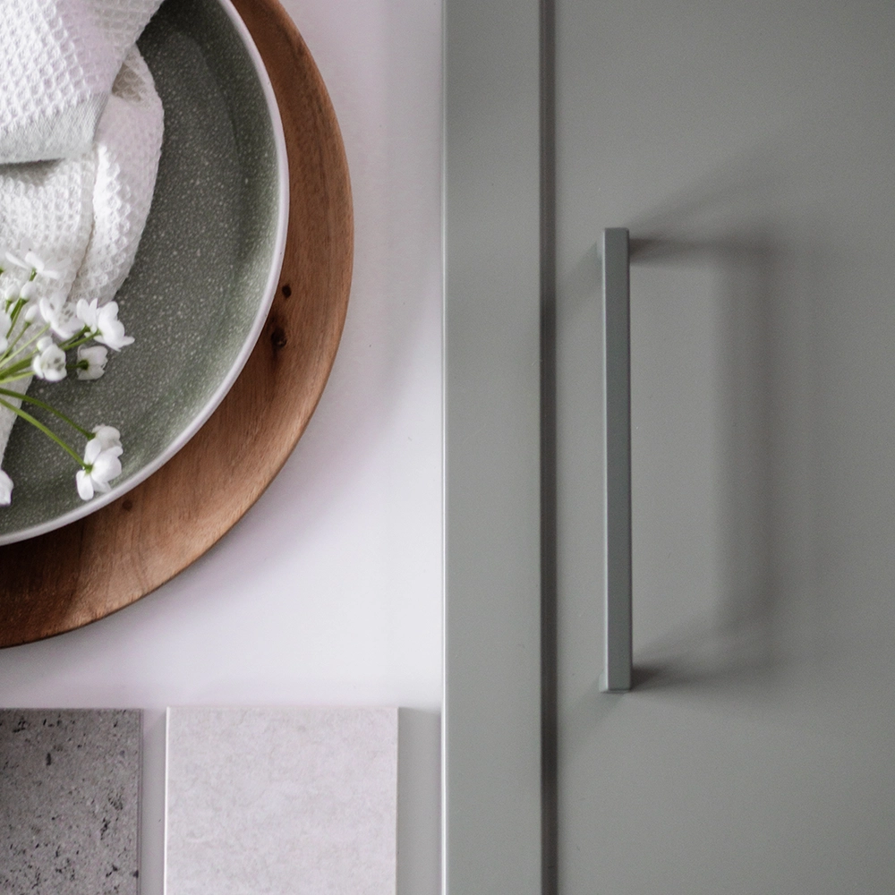 Kitchen handle Linfalk in a grey-green shade that suits kitchens, furnitures or wardrobes. Match with other interior details in the same NCS 6005-G50Y