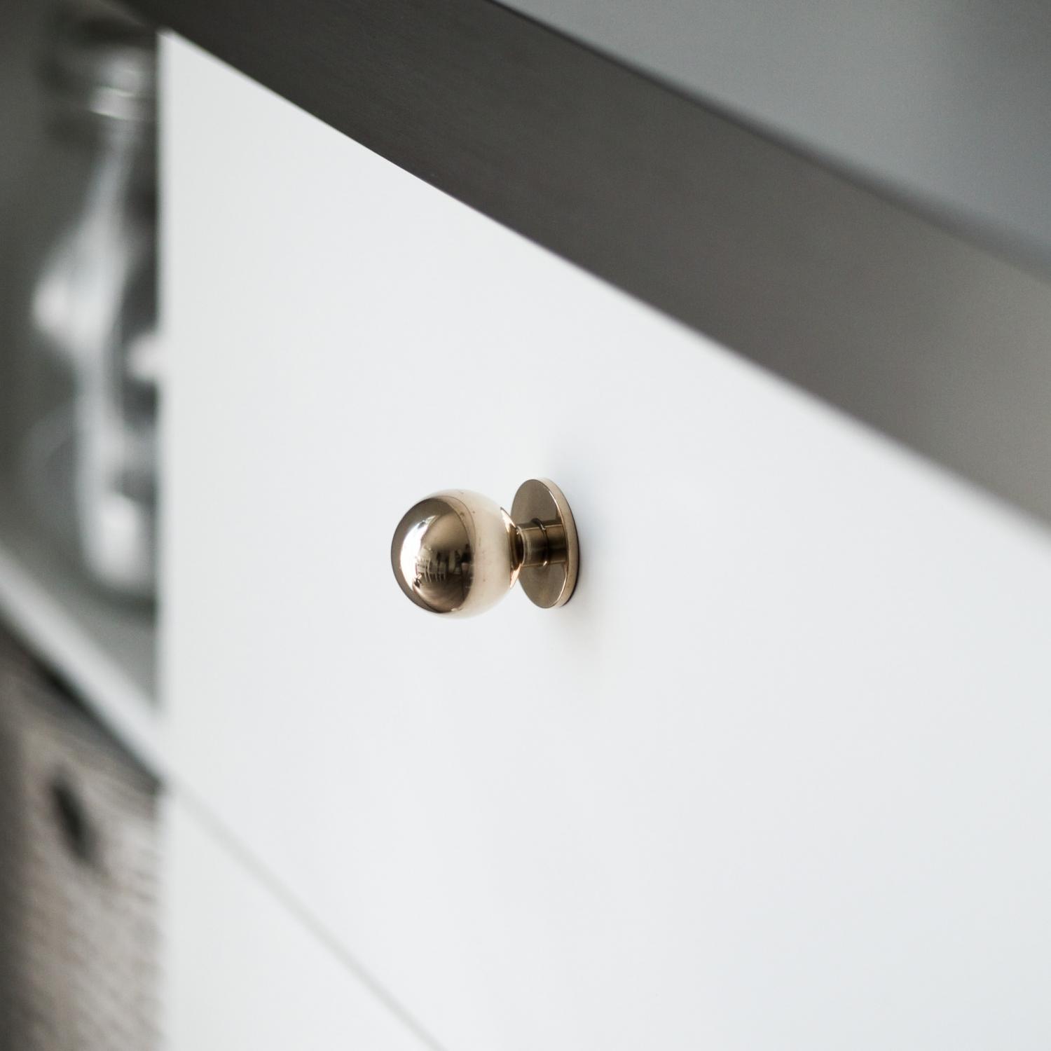 The Berg Knob is our most popular kitchen knob, suitable for most interior styles! The knob is entirely solid in its metal construction, providing a substantial feel that lasts for many years! While most commonly used in kitchens, Berg is equally effective on a dresser, commode, or sideboard. Berg features a round ball-shaped grip and a flat base, which can be advantageous for covering marks left by previous hardware. We offer Berg in two different sizes!