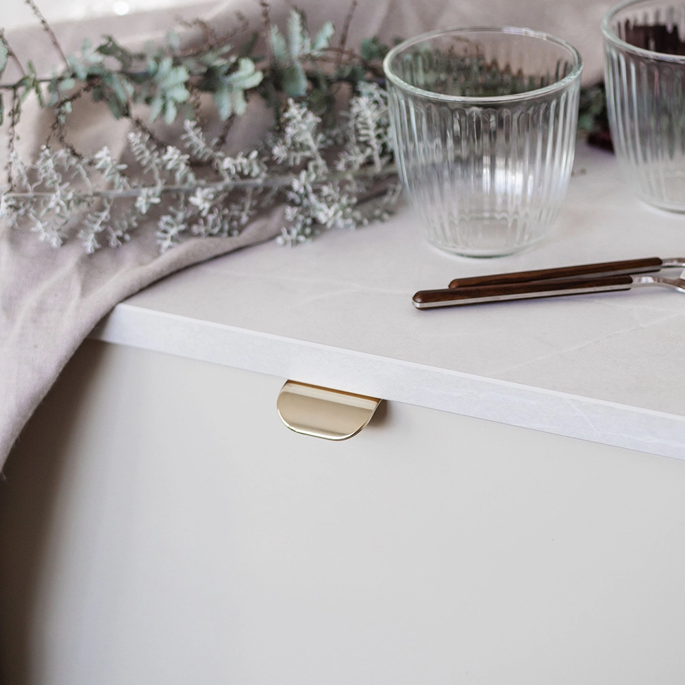 Modern profile handle Tinnerbäcken that is mounted behind the door over the edge of the door / front. The handle has an angular shape that gives a nice silhouette and at the same time is very grip-friendly and stylish. Perfect for minimalist kitchens!