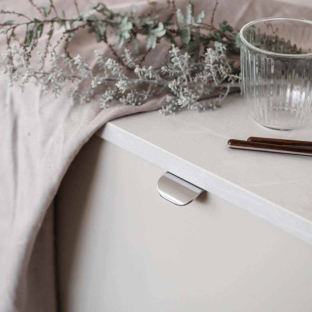 Modern profile handle Tinnerbäcken that is mounted behind the door over the edge of the door / front. The handle has an angular shape that gives a nice silhouette and at the same time is very grip-friendly and stylish. Perfect for minimalist kitchens!