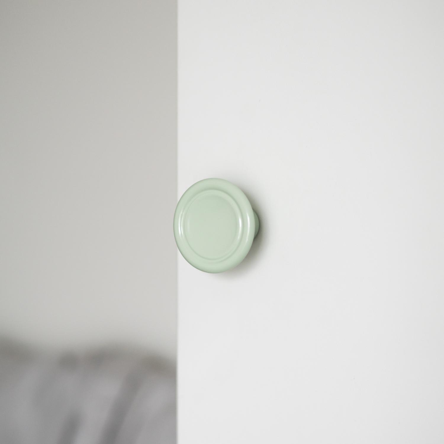 Lovely round knob with inspiration from the 1950s. Choose the color shade that suits your room or mix several different colors for a mischievous impression.