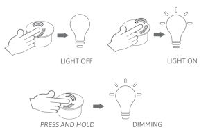 The touch sensor is a small stylish and wireless button that can be recessed or surface-mounted with a spacer ring under or inside a cabinet. With a simple touch of the sensor you can turn off the lights, turn on the lights or dim the light.
