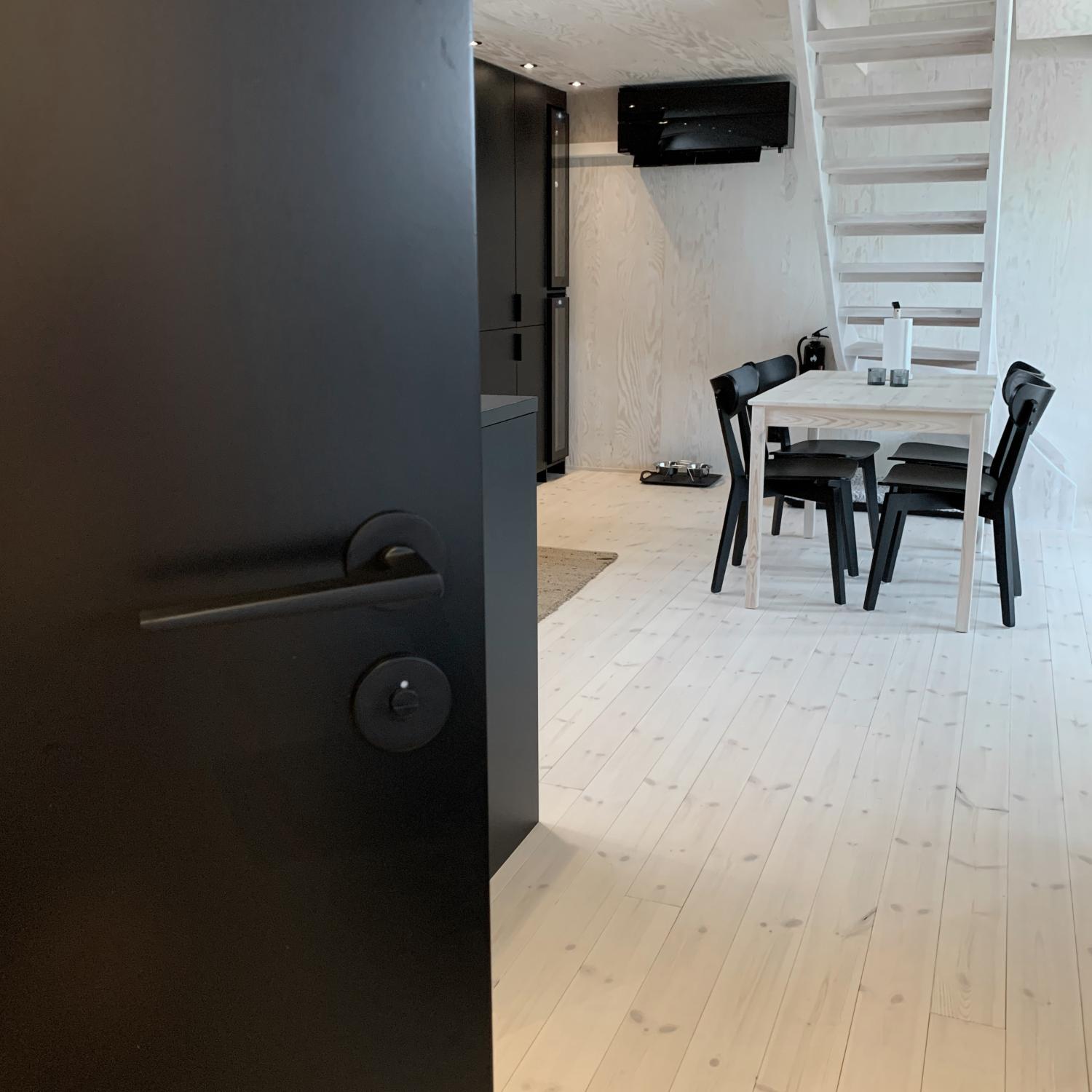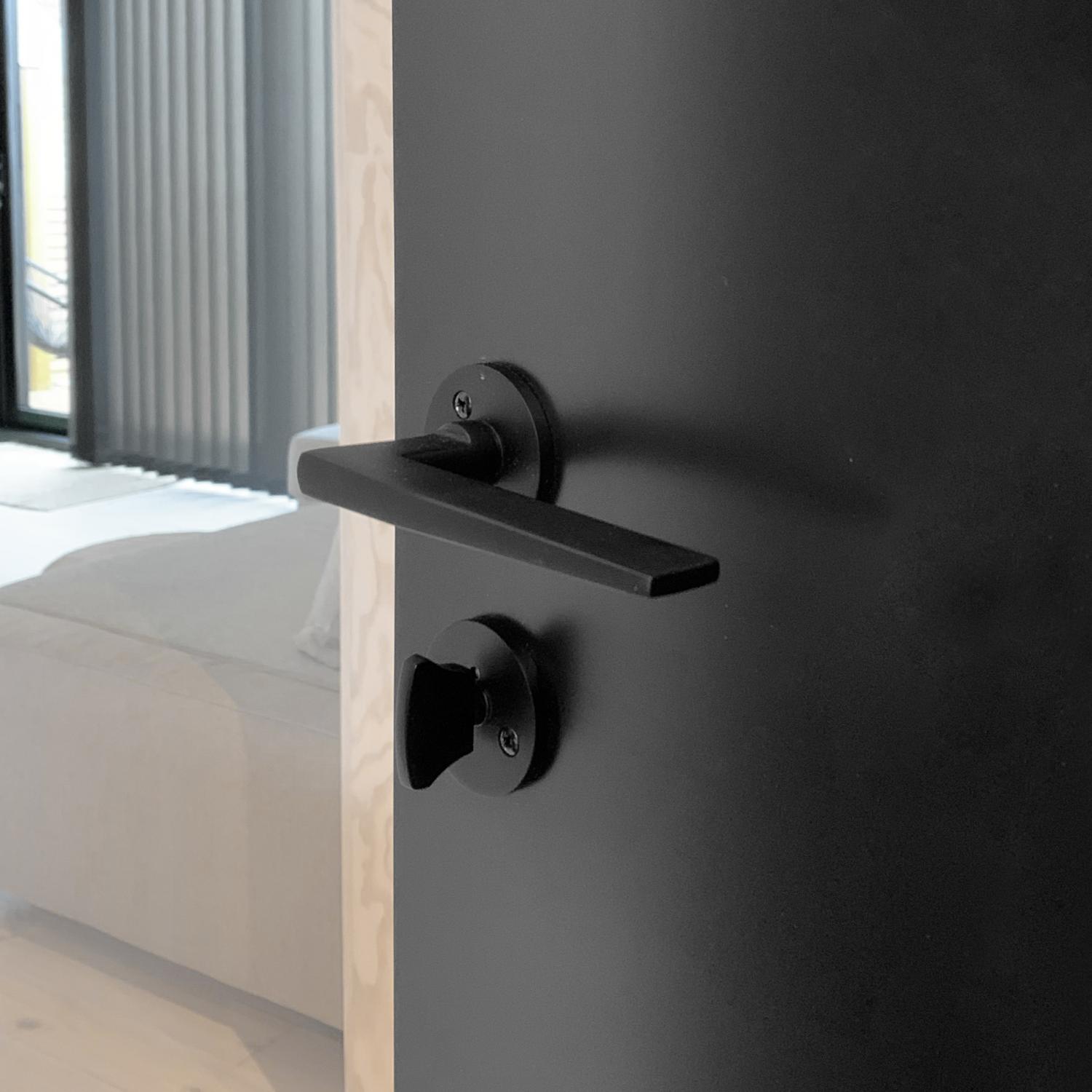 Noen is a modern and minimalist WC fitting in black, perfect for use as a bathroom door lock. The fitting is designed to match interior door handles, creating a cohesive and stylish look in your home.