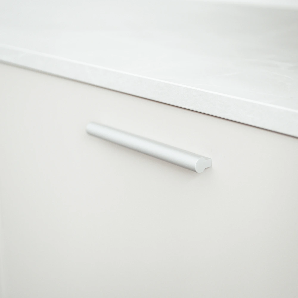 Gediget handtag i aluminium. Foten på handtaget går längst med hela beslaget. Passar utmärkt som handtag till kök, garderober och på modernare byråer.