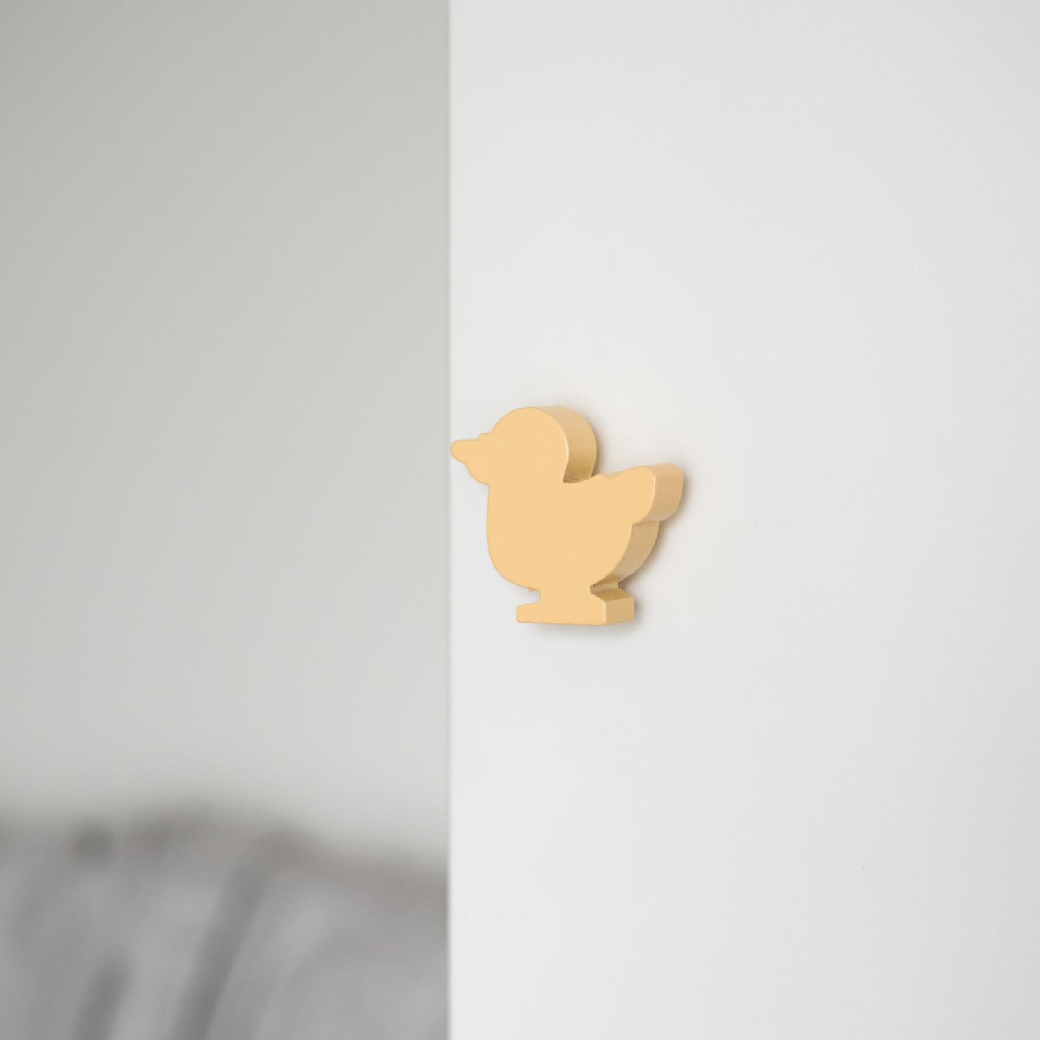 Träknopp Anka är en charmig och unik knopp tillverkad av trä. Dess figurformade design ger en lekfull och dekorativ touch till möbler och skåp, vilket gör den perfekt för barnrummet eller för att lägga till en personlig detalj i andra rum. Träknoppen är enkel att montera och kombinerar både funktion och estetik på ett vackert sätt, vilket gör den till ett utmärkt val för att förnya och försköna ditt hem.