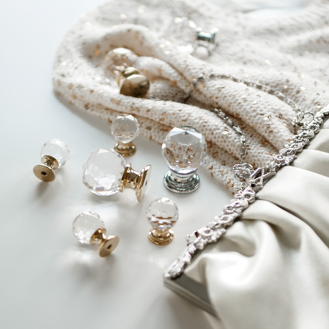 Den här knoppen i kristall & krom kombinerar lyxig kristall med en elegant kromad fot, vilket skapar en sofistikerad look för ditt hem. Den facetterade kristallknoppen ger ett gnistrande intryck, medan den kromade basen ger en modern touch. Perfekt för byråer, garderober och badrumsskåp. Knoppen är enkel att montera och levereras med M4-skruvar.