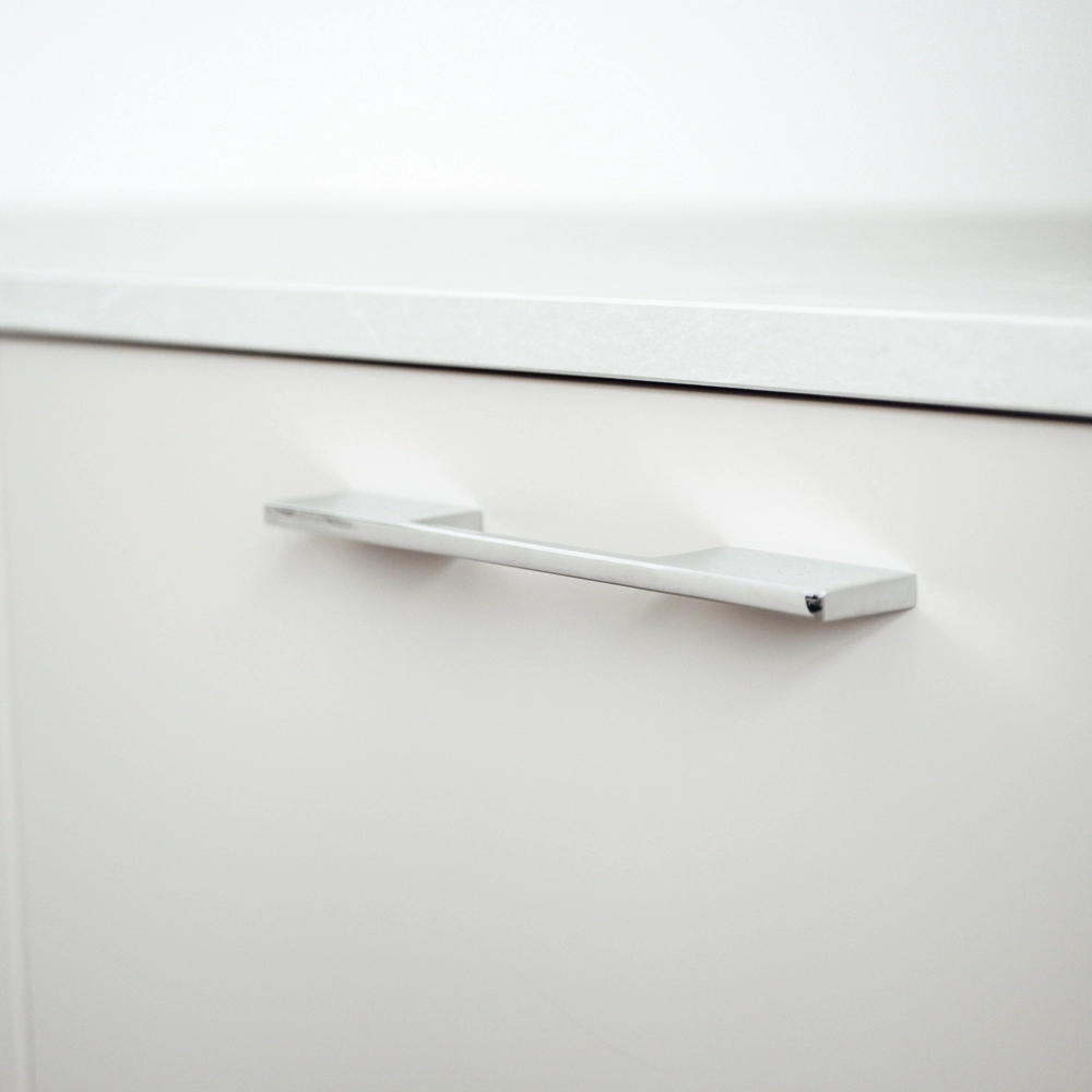 Modernt och stilrent handtag i krom som passar både i kök och på garderoberna! Detta smala handtag har centrerat grepp och breda fötter.
