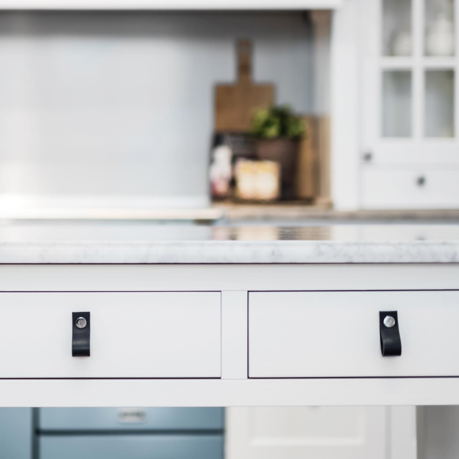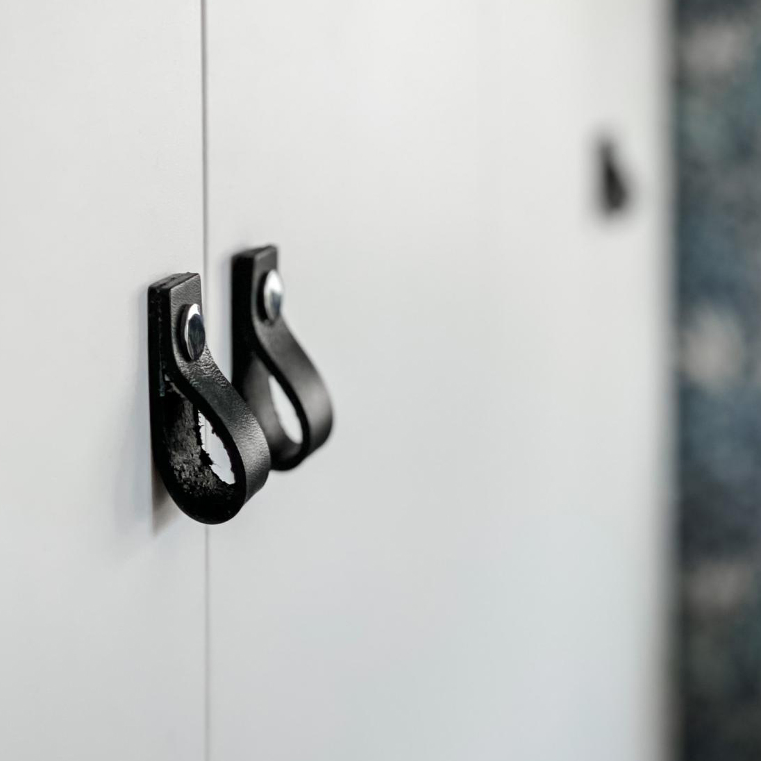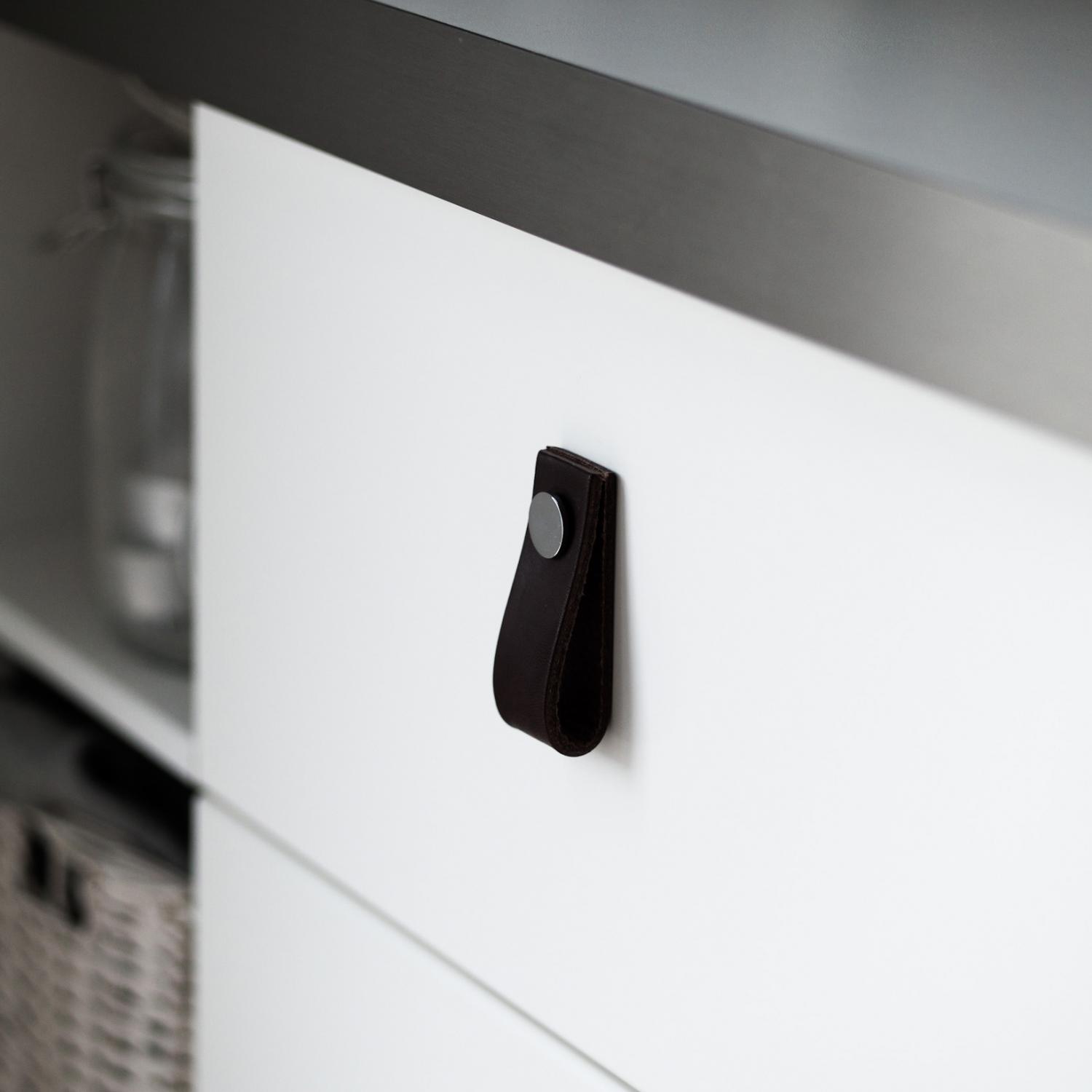 Vår läderknopp Loop är en stilren och modern knopp som består av en "läderflärp" och en liten metallknopp för fäste. Designad som en vikt ögla med läder, erbjuder den ett elegant och smidigt grepp för lådor och skåpluckor i köket eller på byrån. Denna populära läderloop passar perfekt i både moderna och industriella inredningsstilar, och tillför en unik touch till ditt hem.
