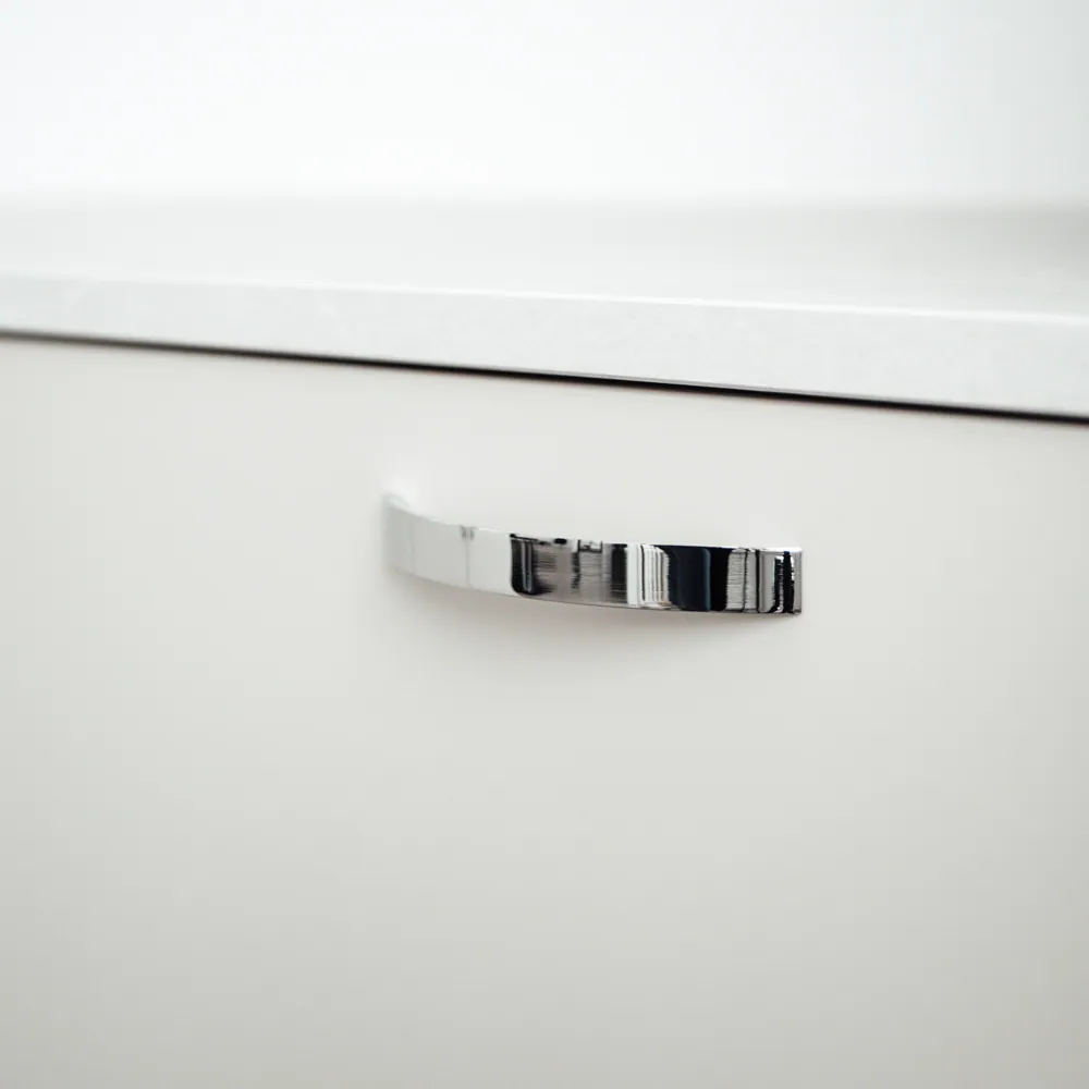 Stångebro är ett modernt bågformat beslag i stilren design. Handtaget har en rundad undersida för ett skönare grepp. Beslaget passar bra som kökshandtag men även som beslag på garderober och byråmöbler.