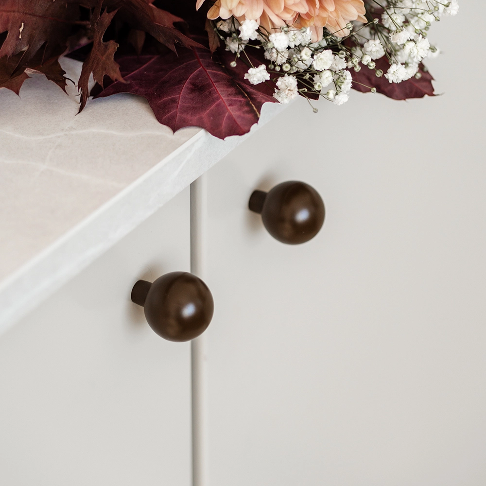 Bona i varm brun finish är den perfekta knoppen för dig som vill skapa en ombonad och trendig känsla i ditt hem. Med sin rika, bruna ton (NCS S 8010-Y30R) och mjuka, runda form ger den en harmonisk och elegant touch till skåp och lådor. Bona passar lika bra i köket som i hallen eller vardagsrummet, där den med sin tidlösa design och höstens trendfärg smälter in i både moderna och klassiska inredningar. Oavsett var du placerar den kommer Bona att tillföra värme och personlighet till ditt hem.