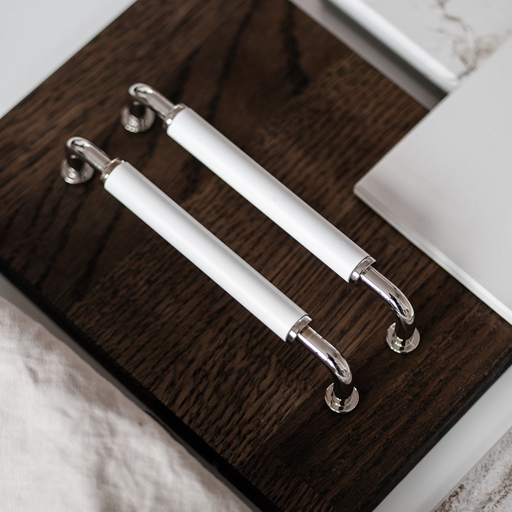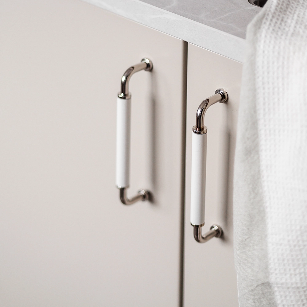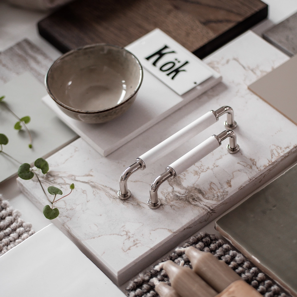 Handtaget Lidhult är en klassisk favorit som har stått sig genom generationer och räknas som ett ikoniskt val för kök och förvaring. I denna variant möts förnicklade fötter och en vit mittendel i en elegant och tidlös kombination som ger ett ljust, sofistikerat uttryck. Den mjuka formen och välbalanserade designen gör att Lidhult passar lika bra i traditionella kök som i moderna miljöer, men även på garderober, byråer och kommoder.