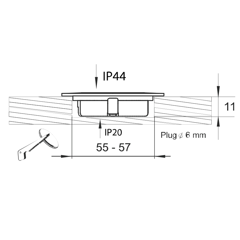 - Lampan är av IP-klass 44 från framsidan och IP-klass 20 från baksidan